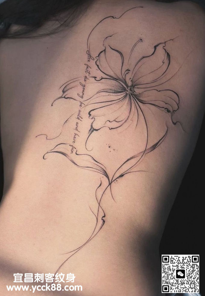 背部抽象意识流花纹身  查看更多人体个性纹身图案请登入宜昌刺客纹身网 www.ycck88.com