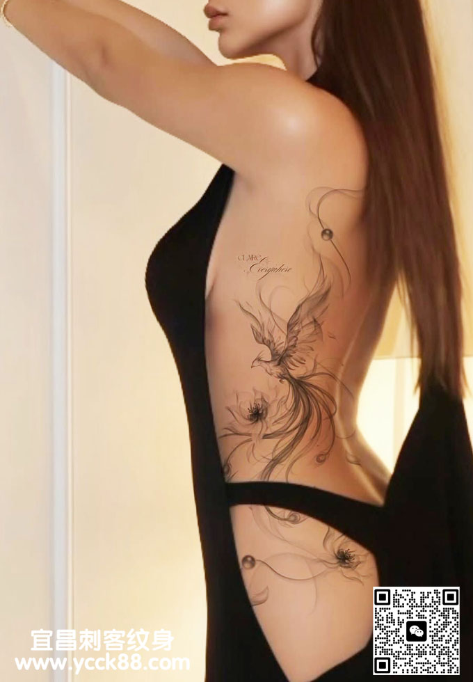 腰侧抽象意识流凤凰纹身 查看更多人体个性纹身图案请登入宜昌刺客纹身网 www.ycck88.com