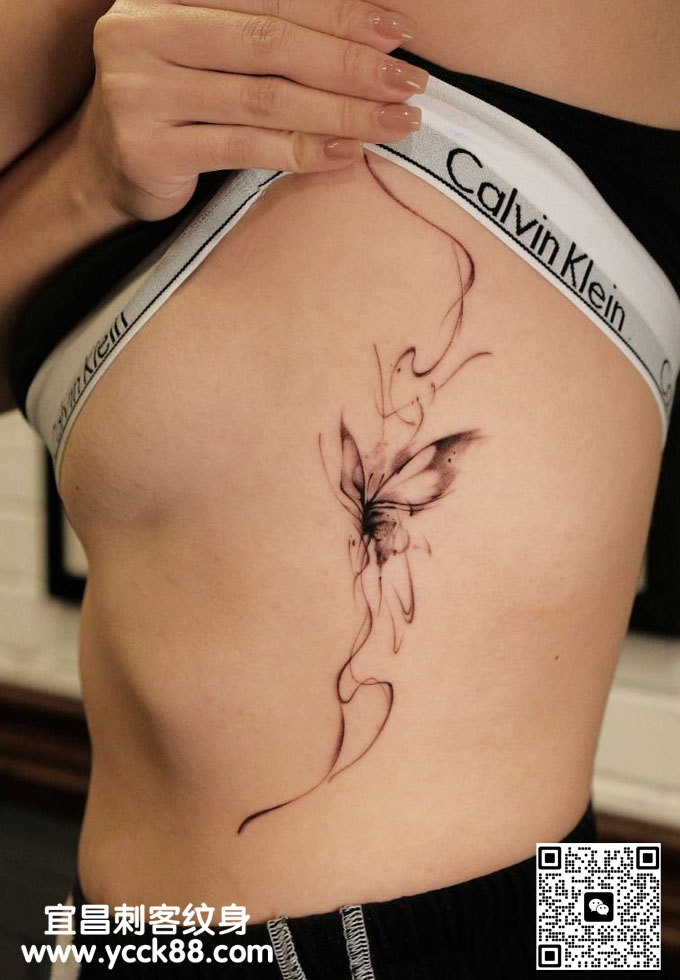腹部抽象意识流蝴蝶纹身 查看更多人体个性纹身图案请登入宜昌刺客纹身网 www.ycck88.com