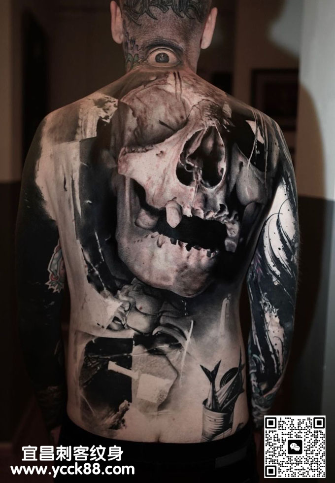暗黑风格满背骷髅纹身 查看更多人体个性纹身图案请登入宜昌刺客纹身网 www.ycck88.com