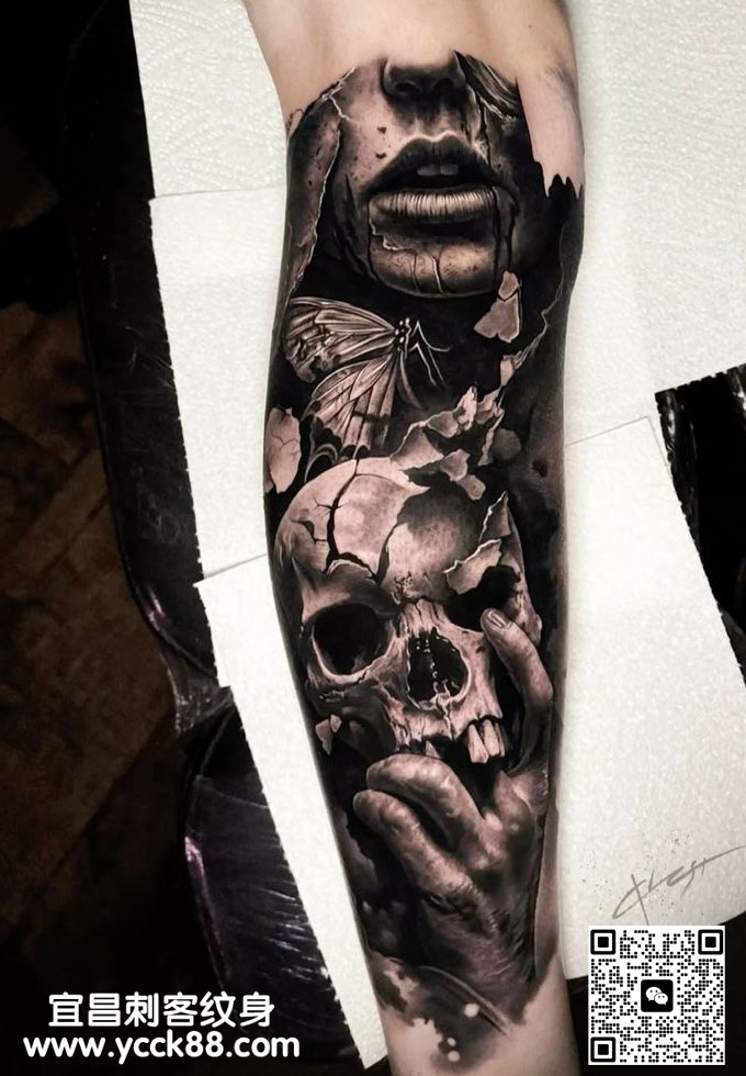花臂骷髅纹身图案  查看更多人体个性纹身图案请登入宜昌刺客纹身网 www.ycck88.com
