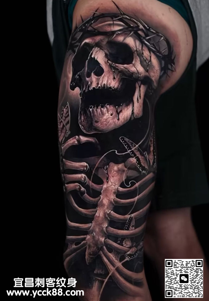 腿部骷髅头纹身图案 查看更多人体个性纹身图案请登入宜昌刺客纹身网 www.ycck88.com