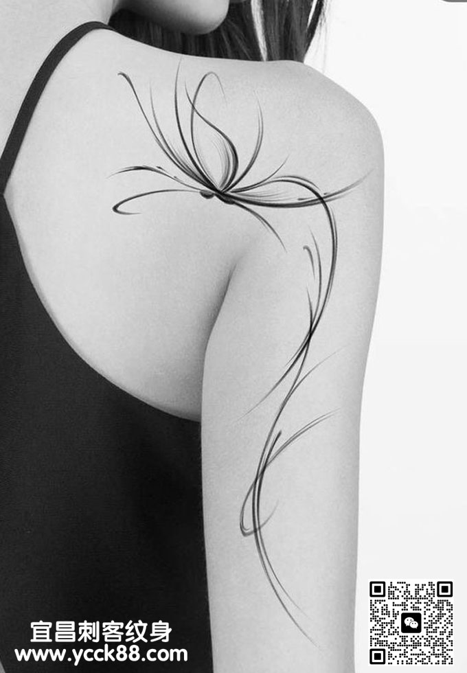 肩部细线风格纹身 查看更多人体个性纹身图案请登入宜昌刺客纹身网 www.ycck88.com