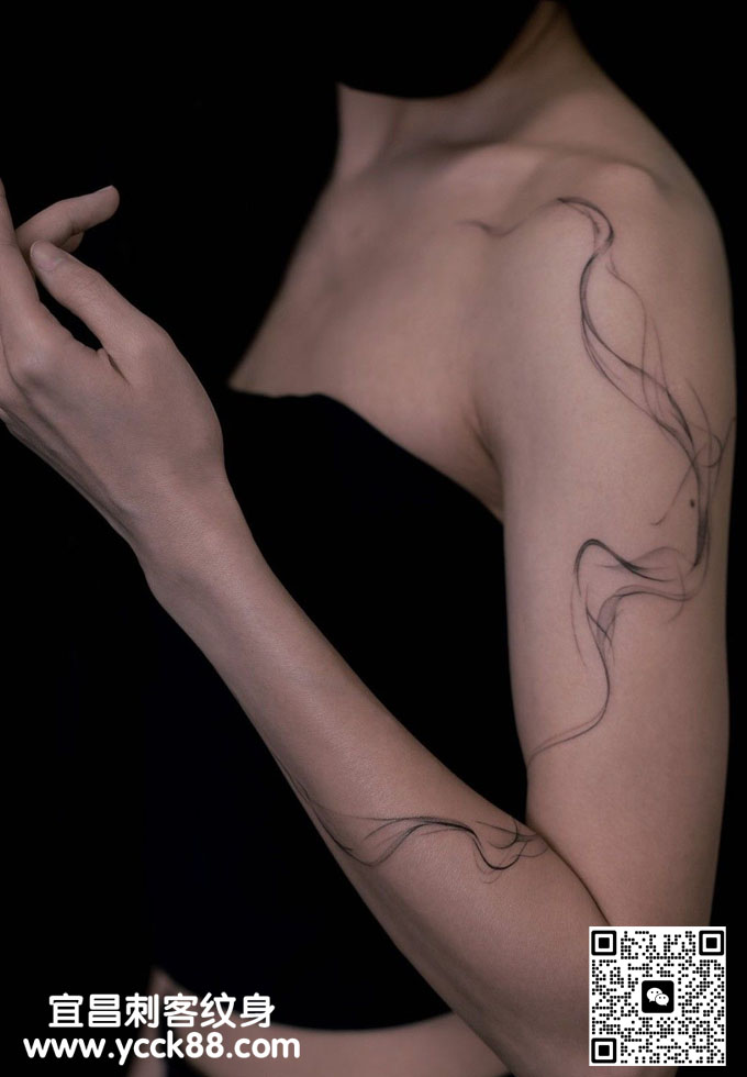 手臂细线风格纹身 查看更多人体个性纹身图案请登入宜昌刺客纹身网 www.ycck88.com