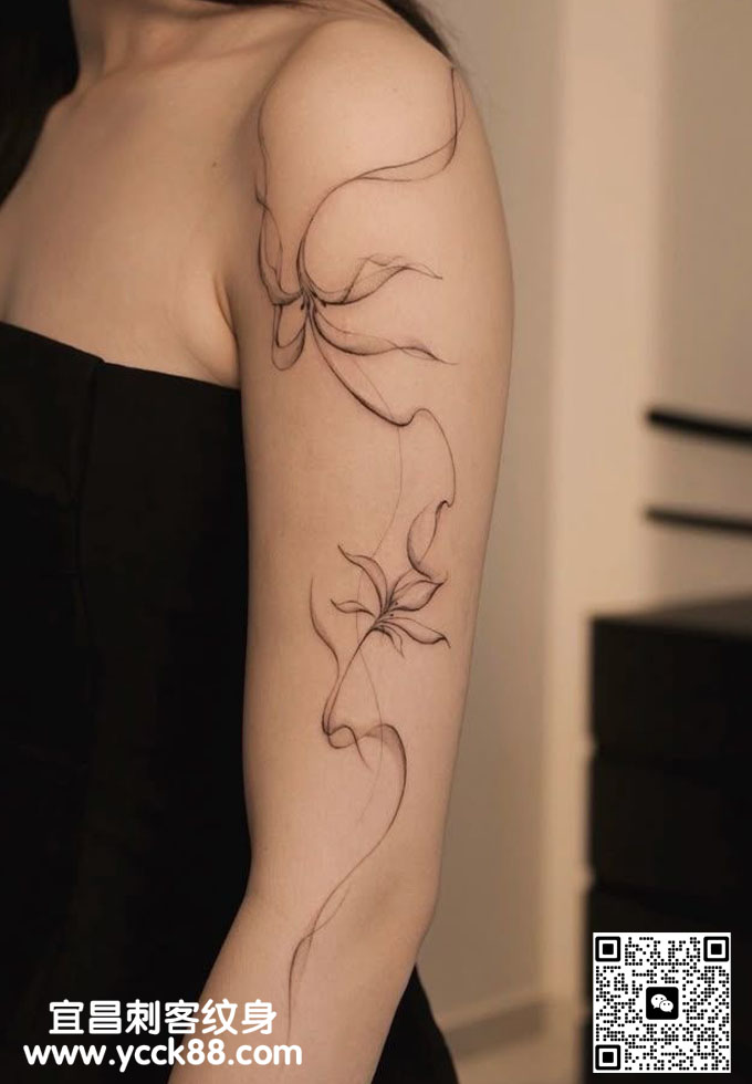 手臂细线风格纹身  查看更多人体个性纹身图案请登入宜昌刺客纹身网 www.ycck88.com