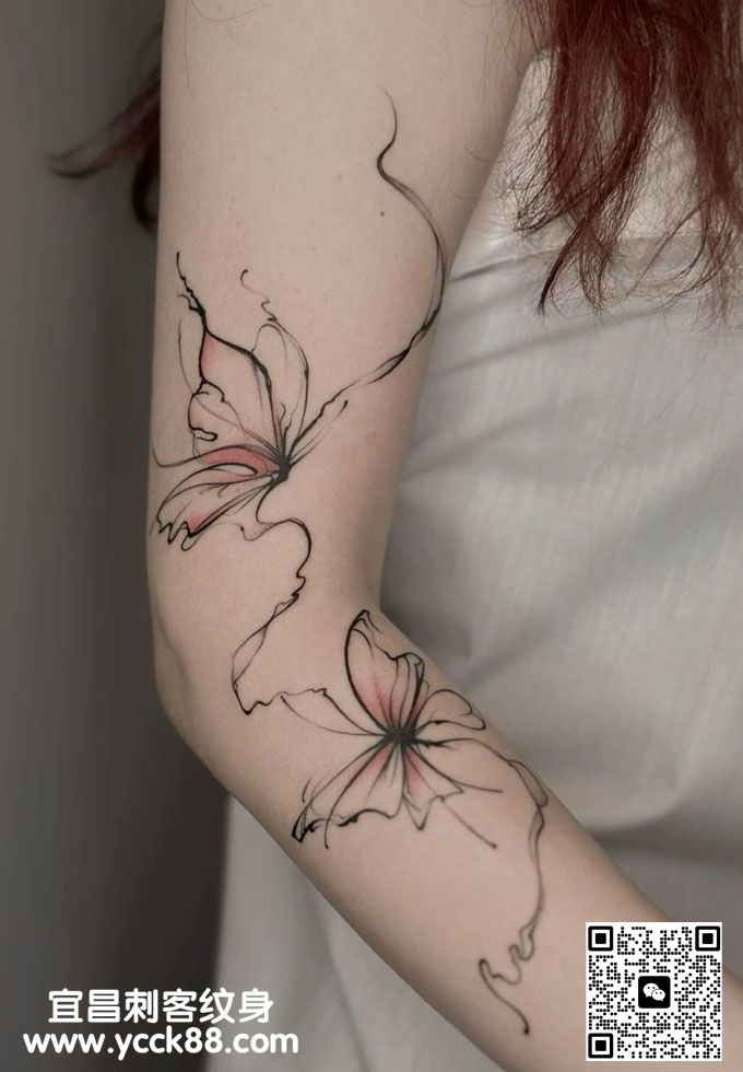 细线风格蝴蝶纹身  查看更多人体个性纹身图案请登入宜昌刺客纹身网 www.ycck88.com