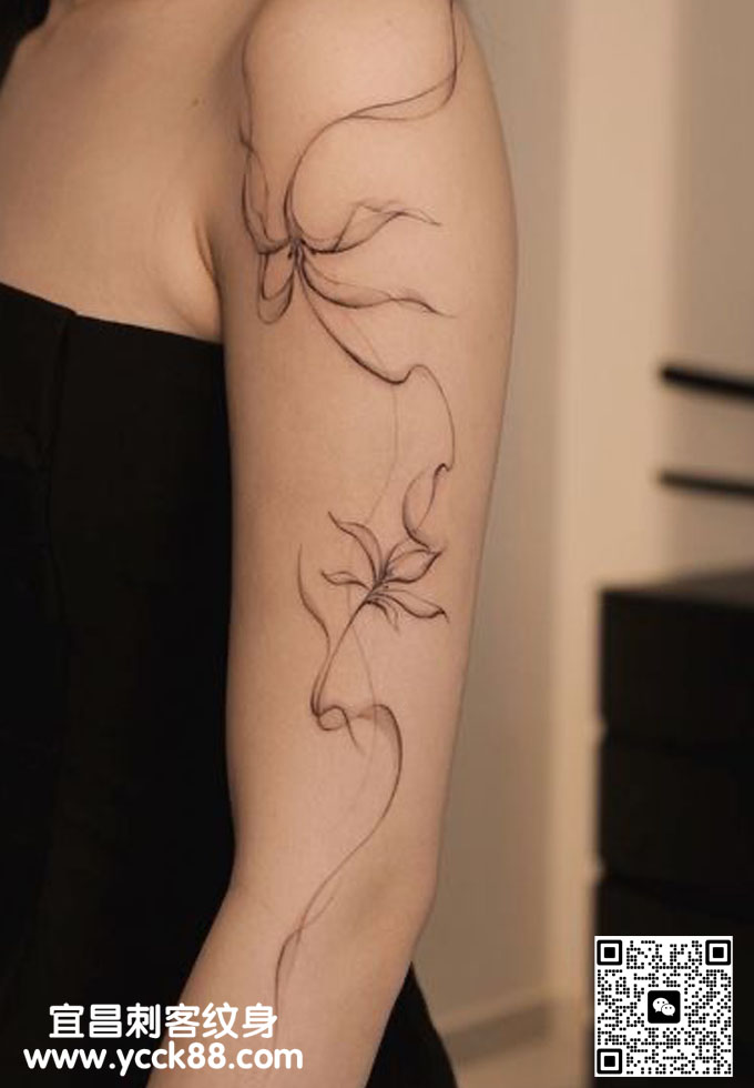 手臂细线风格纹身  查看更多人体个性纹身图案请登入宜昌刺客纹身网 www.ycck88.com