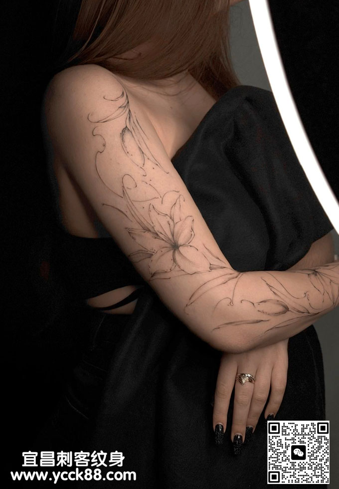 细线风格花纹身 查看更多人体个性纹身图案请登入宜昌刺客纹身网 www.ycck88.com