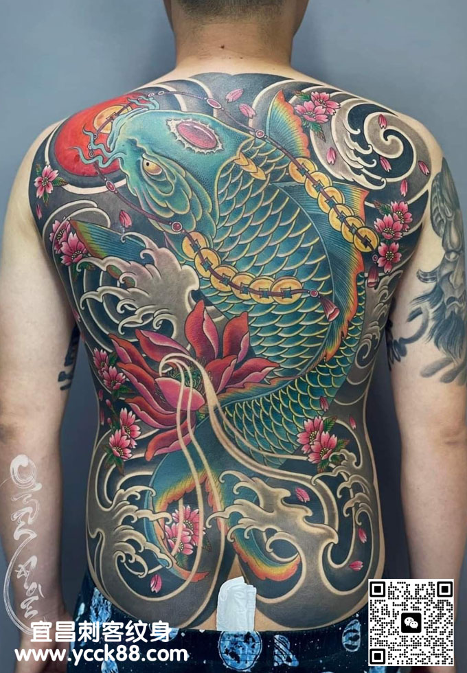 彩色满背鱼纹身图案 更多纹身图案请登入宜昌刺客纹身网 www.ycck88.com