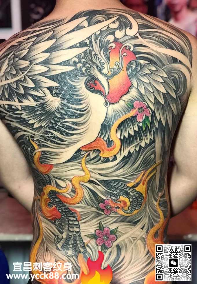 满背凤凰纹身图案 更多纹身图案请登入宜昌刺客纹身网 www.ycck88.com