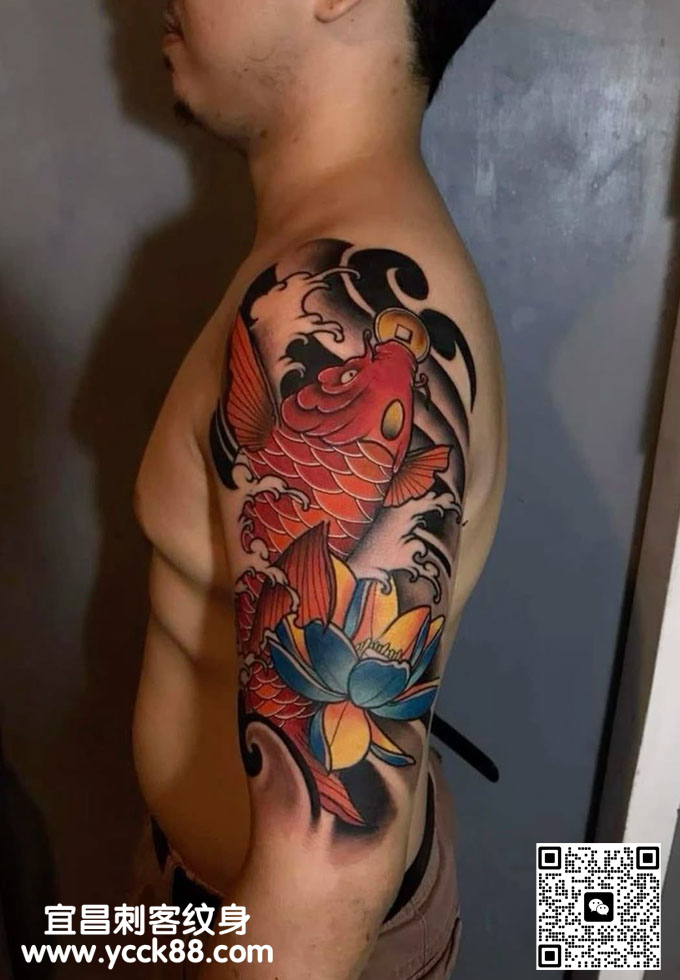 彩色鲤鱼纹身图案 更多纹身图案请登入宜昌刺客纹身网 www.ycck88.com