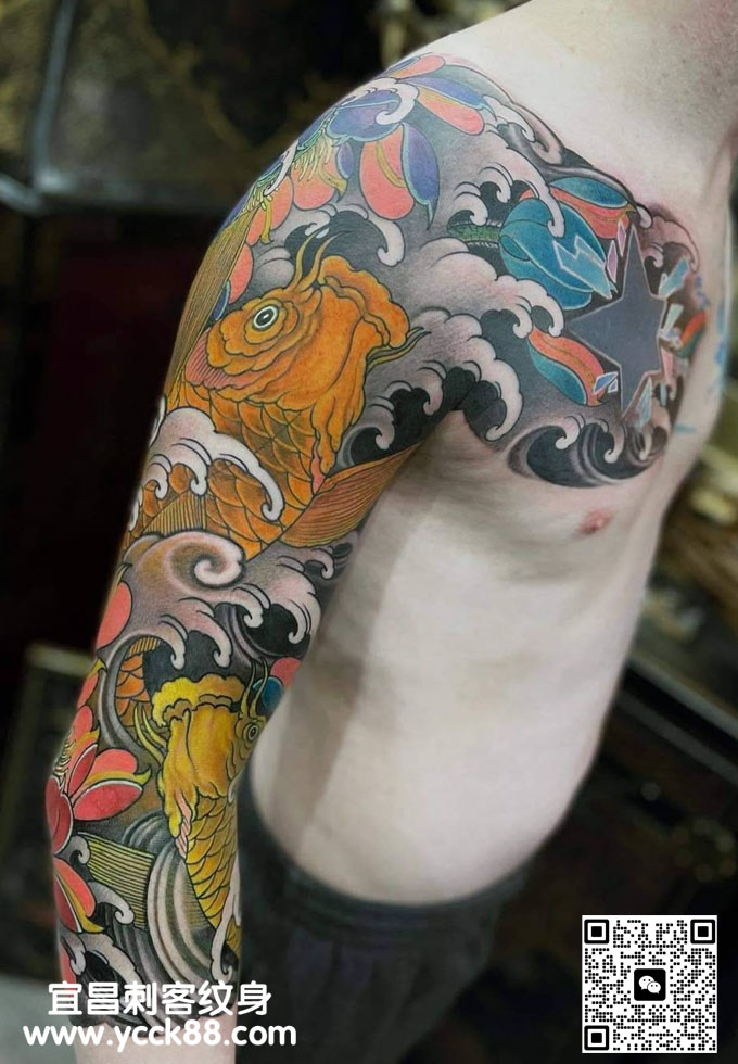 彩色鲤鱼纹身图案 更多纹身图案请登入宜昌刺客纹身网 www.ycck88.com