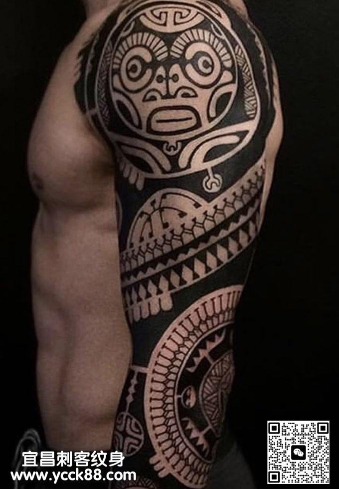 图腾花臂纹身风格 查看更多人体个性纹身图案请登入宜昌刺客纹身网 www.ycck88.com