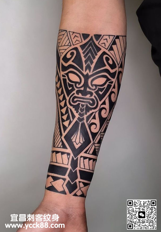 小臂图腾风格纹身 查看更多人体个性纹身图案请登入宜昌刺客纹身网 www.ycck88.com