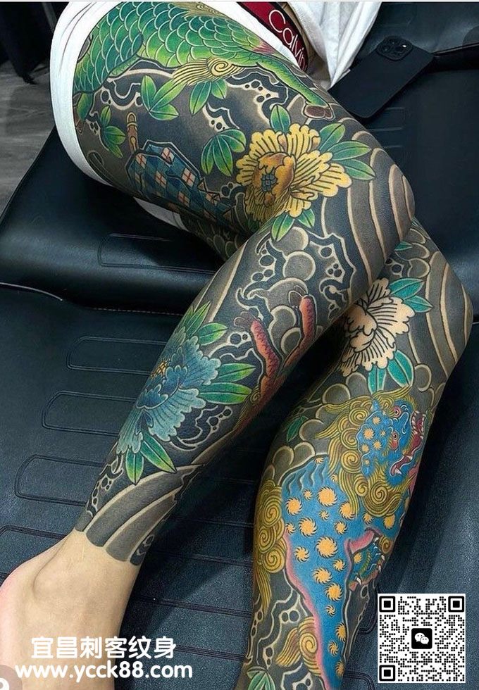 老传统花腿牡丹纹身 查看更多人体个性纹身图案请登入宜昌刺客纹身网 www.ycck88.com