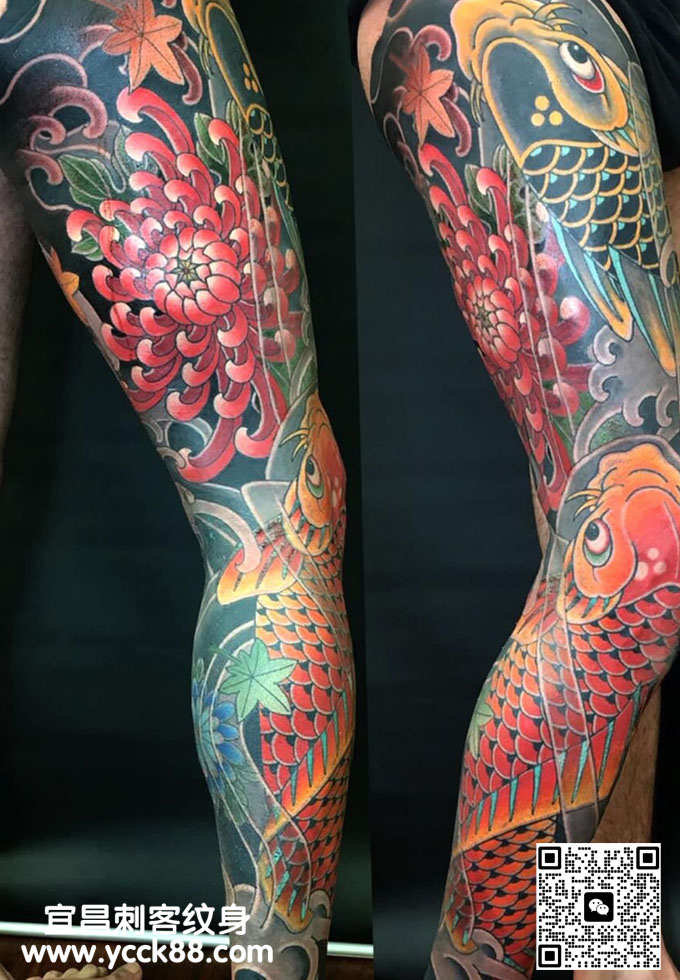 老传统花腿鲤鱼纹身 查看更多人体个性纹身图案请登入宜昌刺客纹身网 www.ycck88.com