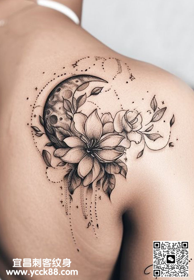 肩部素花纹身 查看更多人体个性纹身图案请登入宜昌刺客纹身网 www.ycck88.com