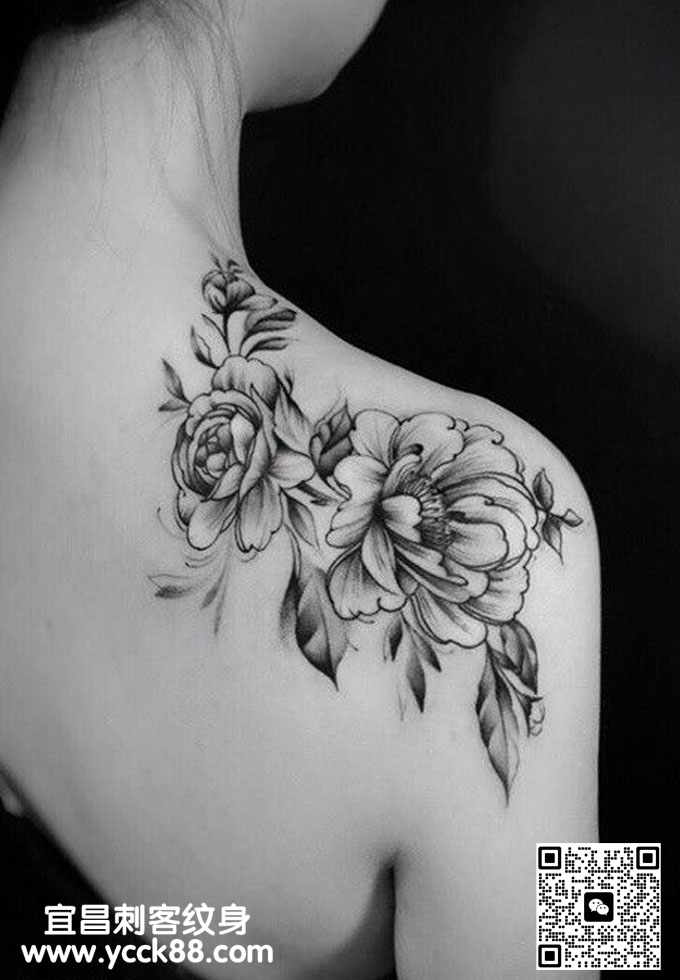 美女肩部素花纹身 查看更多人体个性纹身图案请登入宜昌刺客纹身网 www.ycck88.com