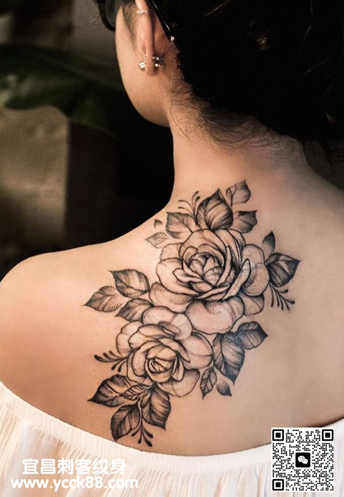肩部素花纹身 查看更多人体个性纹身图案请登入宜昌刺客纹身网 www.ycck88.com