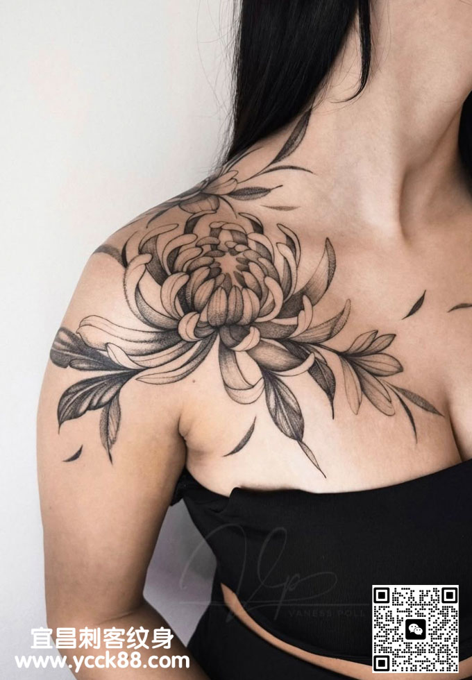 锁骨素花纹身 查看更多人体个性纹身图案请登入宜昌刺客纹身网 www.ycck88.com