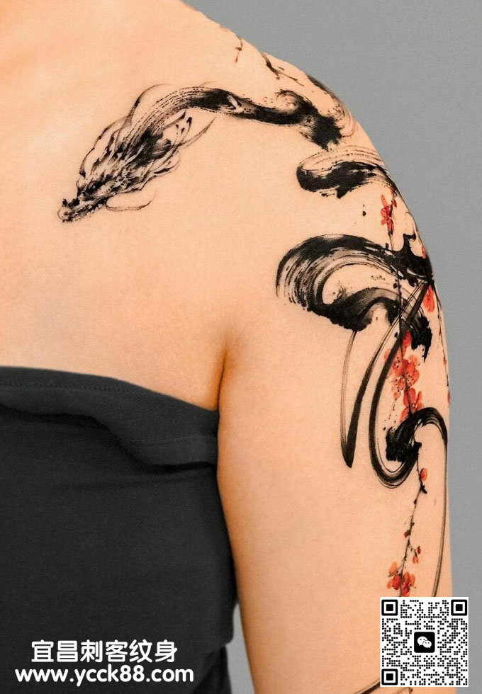 水墨龙纹身 查看更多人体个性纹身图案请登入宜昌刺客纹身网 www.ycck88.com