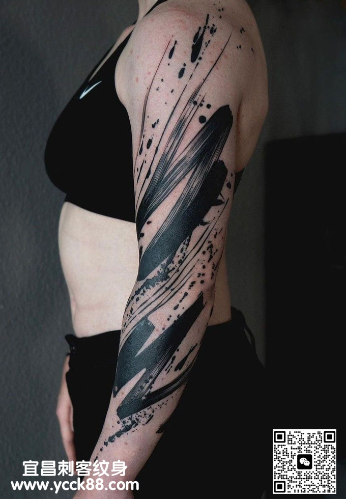 水墨花臂纹身 查看更多人体个性纹身图案请登入宜昌刺客纹身网 www.ycck88.com
