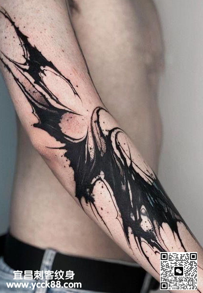 手臂水墨纹身 查看更多人体个性纹身图案请登入宜昌刺客纹身网 www.ycck88.com