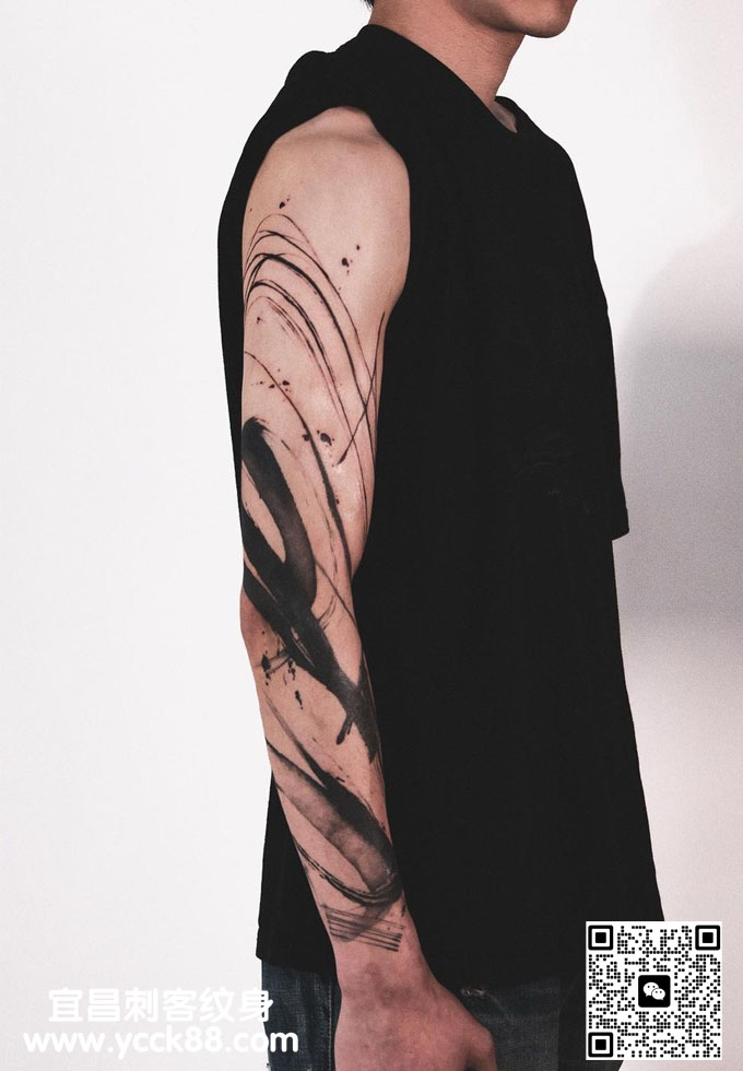 水墨花臂纹身 查看更多人体个性纹身图案请登入宜昌刺客纹身网 www.ycck88.com