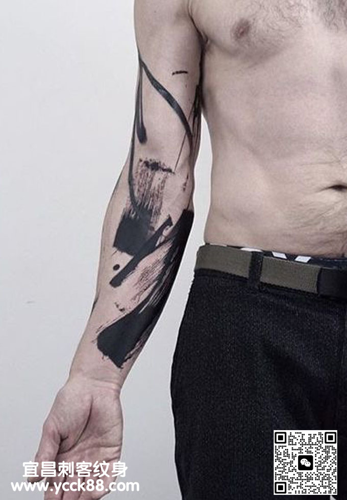 手臂水墨纹身查看更多人体个性纹身图案请登入宜昌刺客纹身网 www.ycck88.com