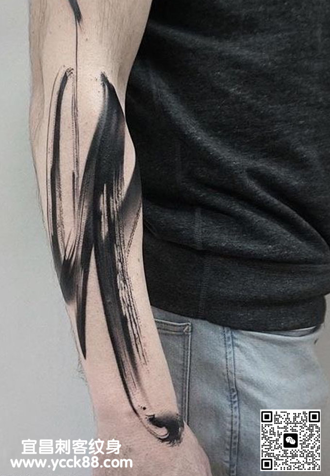 小臂水墨风格纹身 查看更多人体个性纹身图案请登入宜昌刺客纹身网 www.ycck88.com