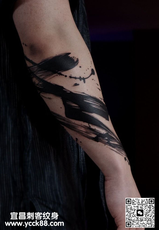 小臂水墨风格纹身 查看更多人体个性纹身图案请登入宜昌刺客纹身网 www.ycck88.com