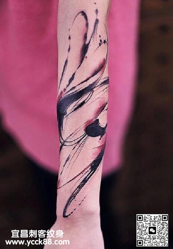 小臂彩色水墨纹身 查看更多人体个性纹身图案请登入宜昌刺客纹身网 www.ycck88.com