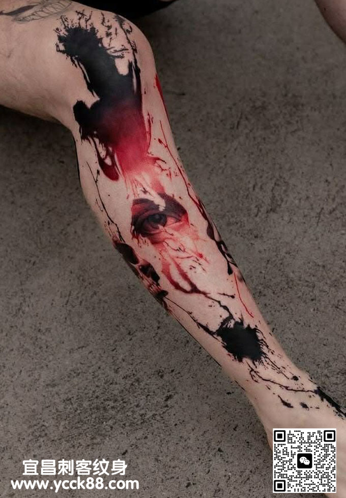 腿部彩色水墨纹身 查看更多人体个性纹身图案请登入宜昌刺客纹身网 www.ycck88.com