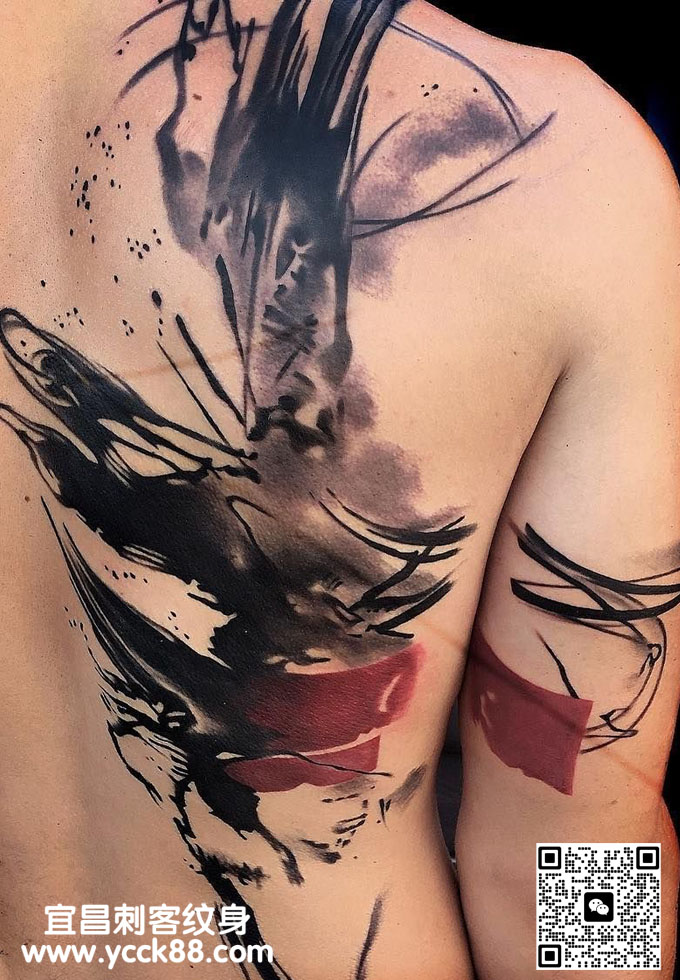 背部水墨纹身 查看更多人体个性纹身图案请登入宜昌刺客纹身网 www.ycck88.com