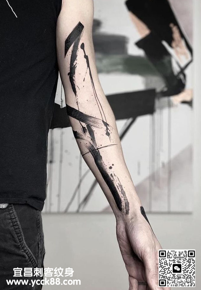 手臂水墨纹身 查看更多人体个性纹身图案请登入宜昌刺客纹身网 www.ycck88.com