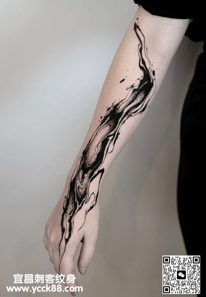 手臂水墨纹身 查看更多人体个性纹身图案请登入宜昌刺客纹身网 www.ycck88.com