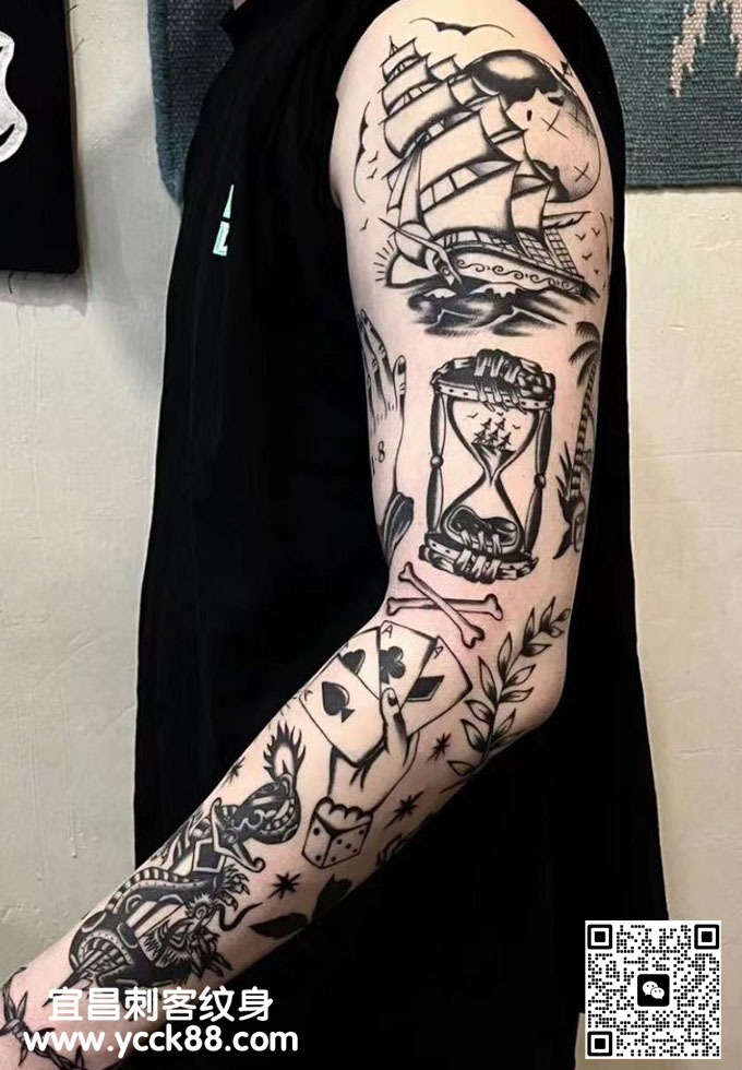 old school花臂纹身 查看更多人体个性纹身图案请登入宜昌刺客纹身网 www.ycck88.com