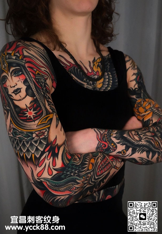 old school彩色花臂纹身 查看更多人体个性纹身图案请登入宜昌刺客纹身网 www.ycck88.com
