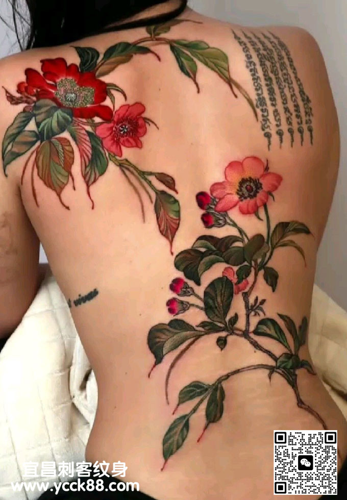 满背水彩风格纹身 查看更多人体个性纹身图案请登入宜昌刺客纹身网 www.ycck88.com
