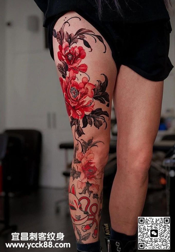 水彩风格花腿纹身查看更多人体个性纹身图案请登入宜昌刺客纹身网 www.ycck88.com