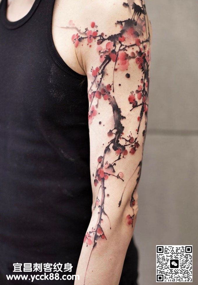 水彩风格梅花纹身 查看更多人体个性纹身图案请登入宜昌刺客纹身网 www.ycck88.com