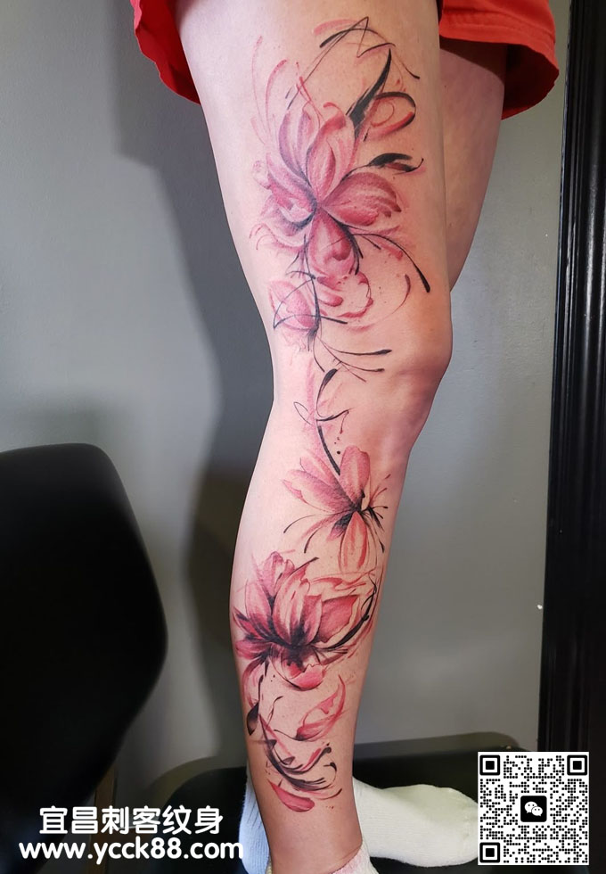 水彩风格莲花纹身 查看更多人体个性纹身图案请登入宜昌刺客纹身网 www.ycck88.com