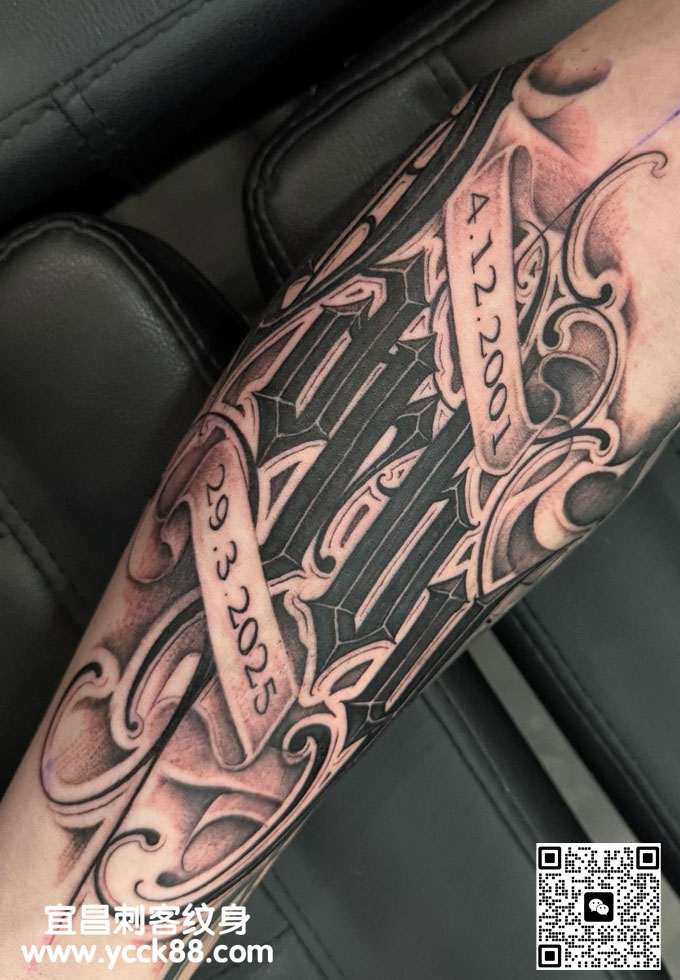 手臂花体字纹身  查看更多人体个性纹身图案请登入宜昌刺客纹身网 www.ycck88.com
