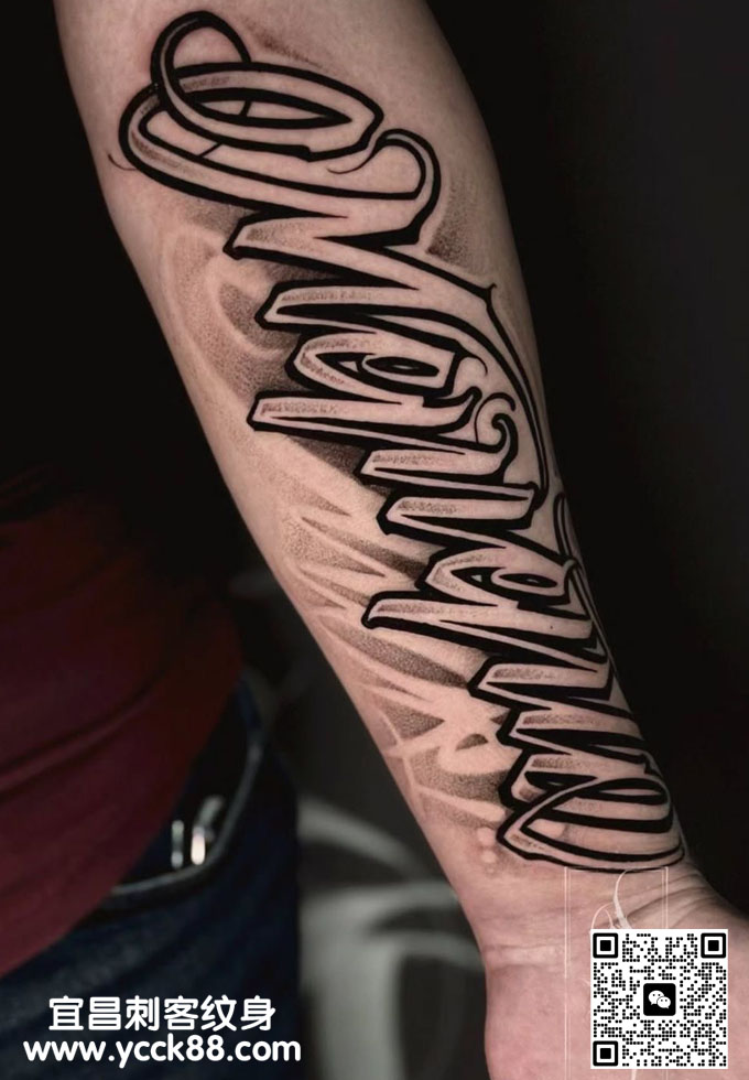 小臂花体字母纹身  查看更多人体个性纹身图案请登入宜昌刺客纹身网 www.ycck88.com