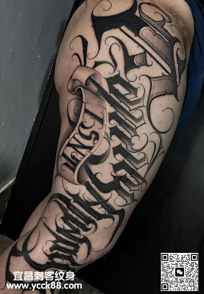 花体字花臂纹身图案 查看更多人体个性纹身图案请登入宜昌刺客纹身网 www.ycck88.com