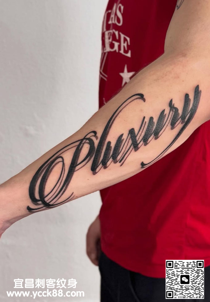 小臂花体字母纹身  查看更多人体个性纹身图案请登入宜昌刺客纹身网 www.ycck88.com
