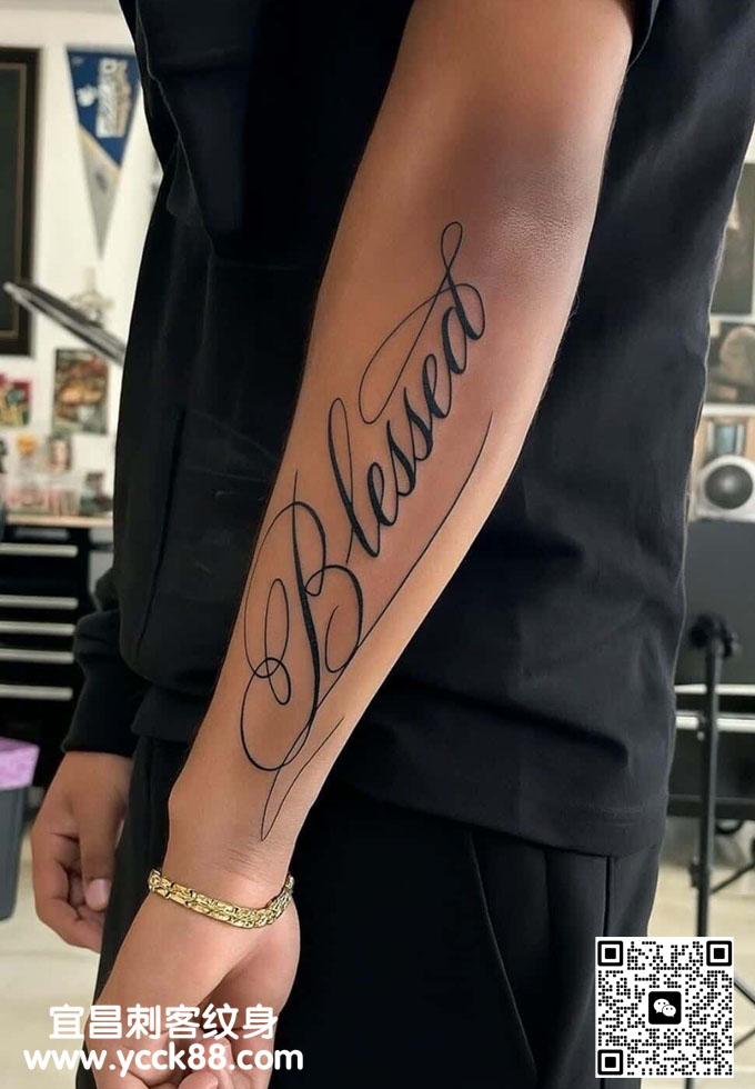 小臂花体字母纹身 查看更多人体个性纹身图案请登入宜昌刺客纹身网 www.ycck88.com