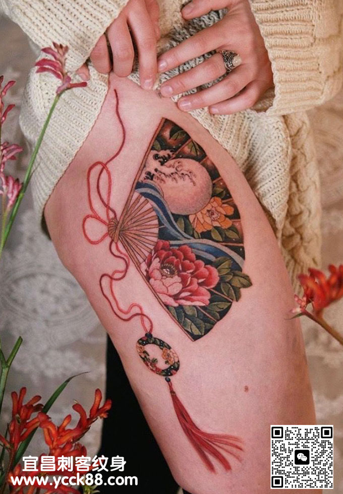 腿部日式小图纹身 查看更多人体个性纹身图案请登入宜昌刺客纹身网 www.ycck88.com