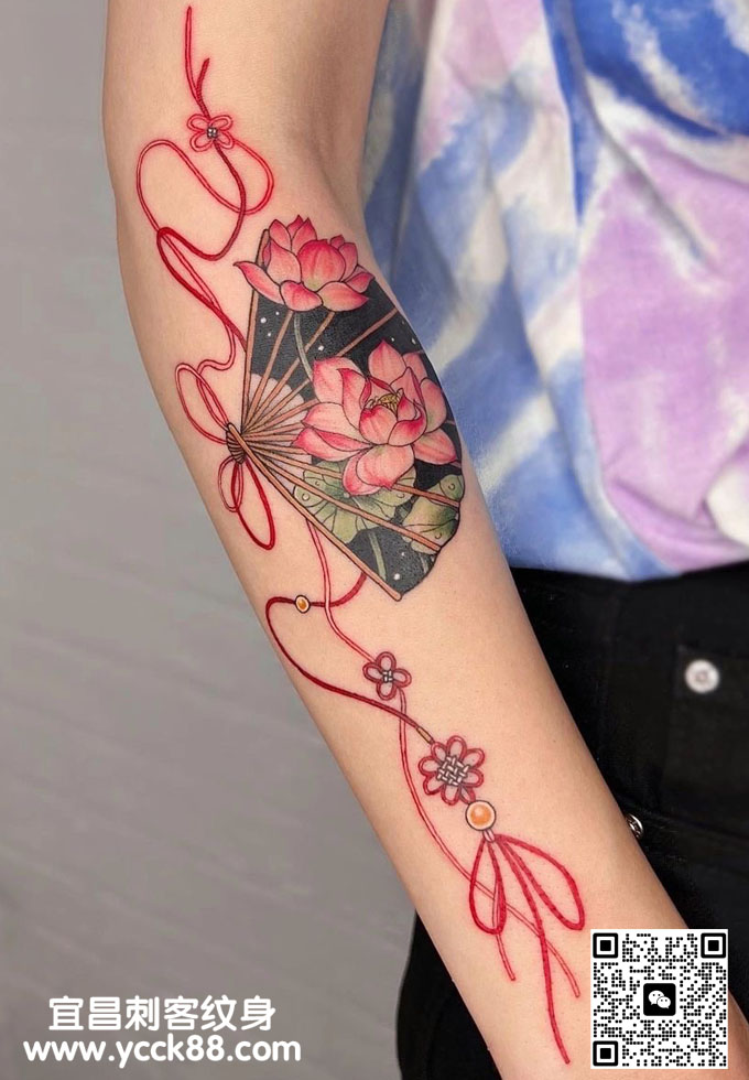 手臂日式莲花纹身  查看更多人体个性纹身图案请登入宜昌刺客纹身网 www.ycck88.com