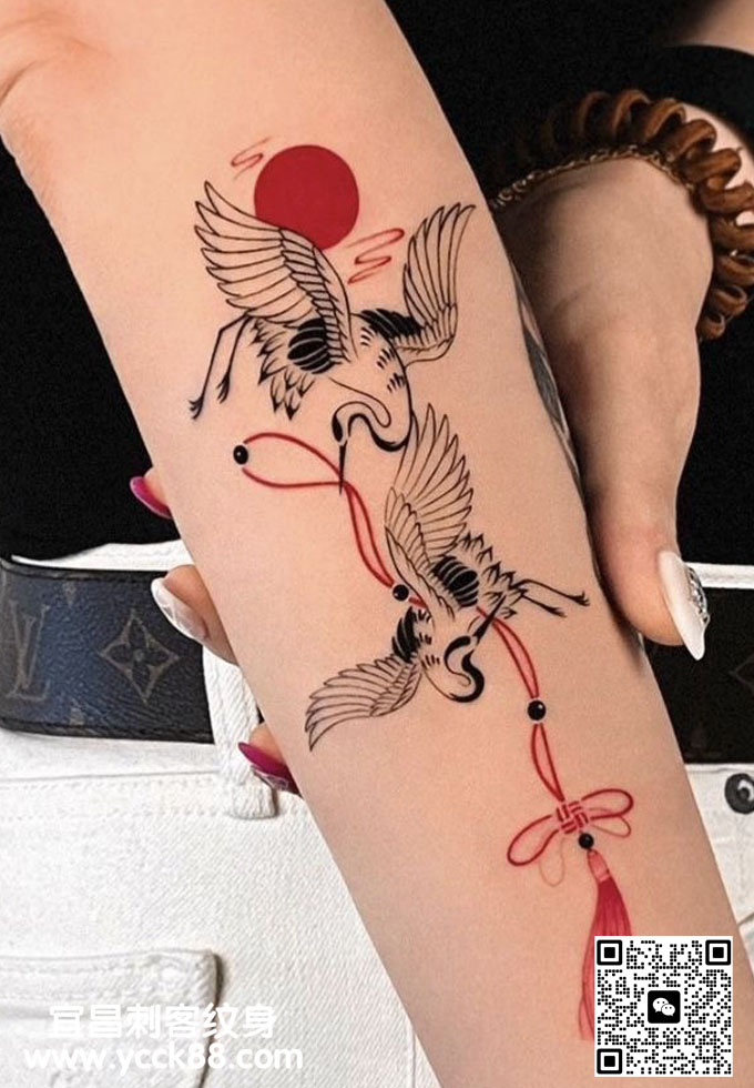 手臂日式仙鹤纹身  查看更多人体个性纹身图案请登入宜昌刺客纹身网 www.ycck88.com